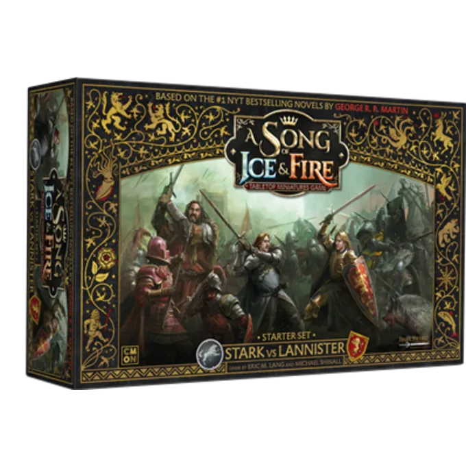 Stark vs Lannister Starter Set har alt, hvad der er nødvendigt for to spillere til at bekæmpe episke kampe. Indeholder styrker til både House Stark og House Lannister, spillerne bygger deres hære, udvælger ledere, konstruerer deres taktikdæk og engagerer