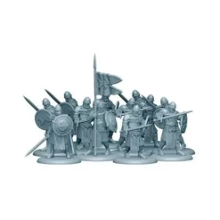 The A Song of Ice & Fire: TablePop Miniatures Game – Stark Swory Swords Unit Box indeholder tolv miniature svorne sværdfigurer, en svoren sværdenheds vedhæftning, en bevægelsesbakke og alle tilknyttede enhedskort. Disse krigere har ventet i det frosne nor