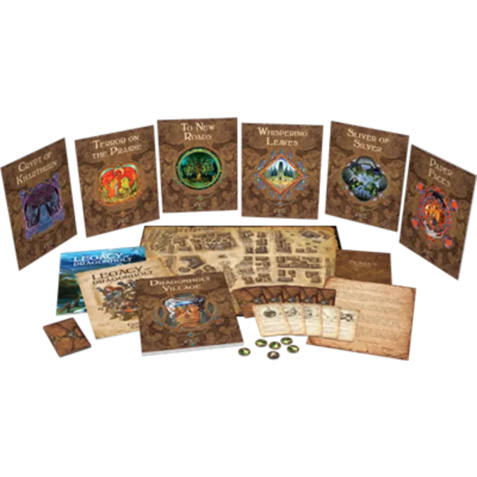 Legacy of Dragonholt! Det første spil, der bruger Oracle -systemet, Legacy of Dragonholt indeholder seks opgaver, der er sat i Runebound -universet, der tager så mange som seks dristige helte til udkanten af Terrinoth. Eventyrere bygger deres egne histo