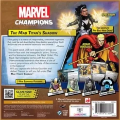 I denne tredje kampagneudvidelse for Marvel Champions: The Card Game , skal du og dine kollegerhelte udfordre kræfterne i Thanos. Denne massive ekspansion indeholder en splinterny kampagne med fem spændende scenarier, der putter dig mod medlemmer af den ivrige sorte orden, herunder Ebony Maw, Proxima Midnight, Corvus Glaive og selvfølgelig Mad Titan selv. Som med tidligere udvidelser, kan du spille hvert af disse scenarier individuelt eller som en del af en større kampagne, og med en række nye modulære møde sæt, vil der være rig mulighed for at blande tingene op for alle dine Marvel Champions indhold. Selvfølgelig betyder en ny bølge af udvidelser også flere helte, og den gale Titans Shadow starter det med de mægtige mestre Adam Warlock og Spectrum, som begge kommer med fuldt forudbygget og klar- Til-play-dæk lige ud af kassen.