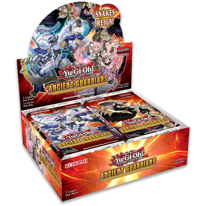 Ancient Guardians afslører kraftfulde nye monstre i foråret 2021! Dette 60-korts booster-sæt introducerer 3 splinternye strategier sammen med ældre kort, der forbedrer dem. Ligesom i Toon Chaos og Genesis Impact , vil 15 ko