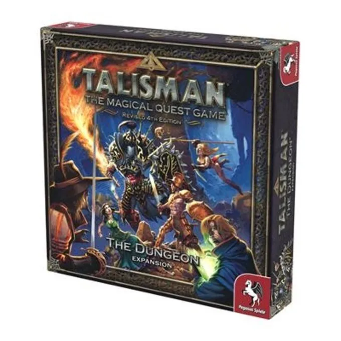 TALISMAN: Dungeon tilføjer en ny region til spillet for Heroes at udforske. Et specialiseret kortbræt og over 100 nye kort bringer denne underjordiske verden levende til live. Fem splinternye karakterer-den formidable Gladiator, Noble Amazon, Dashing Swashbuckler, Enigmatic Gypsy og Sagacious Philosopher-bringes hver især til live med en fremragende detaljeret plastikminiature og tilbyder fantastiske nye spiloplevelser.