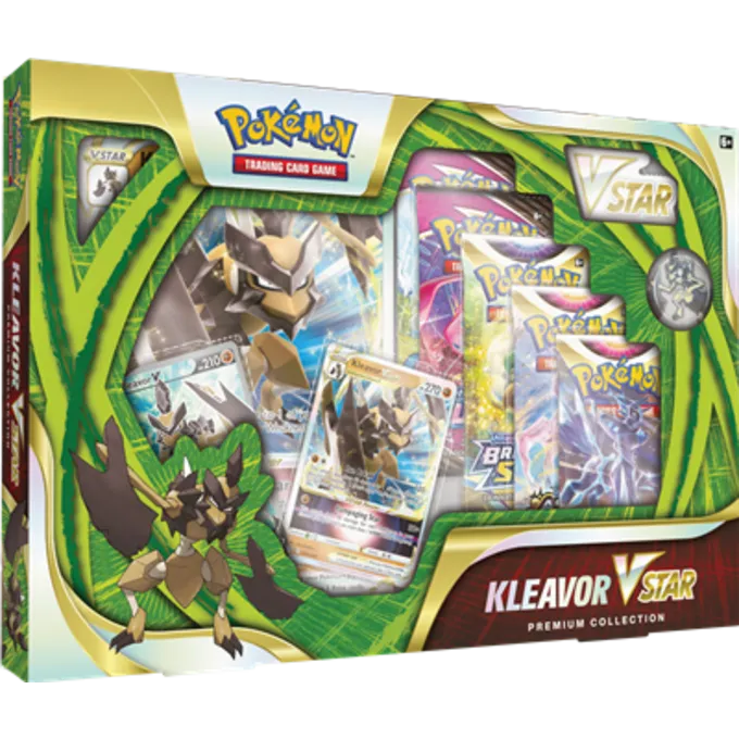 Kleavor VStar skærer og styrter sig ud af ørkenen og ind i dit dæk med begge arme, der svinger! & nbsp; Denne magtfulde Pokémon Vstar kan gøre mere skade for hver Pokémon i din kasseringsbunke, så din modstander & nbsp; bør træde let. Både Kleavor Vstar og Kleavor V er her som spillbare folie -promo -kort sammen med & nbsp; et stort kort, blank emalje, skinnende mønt og boosterpakker med flere kort for at afslutte din & nbsp; strategi. Pas på – Kleavour VStar er klar til at rampe! Pokémon TCG: Kleavor VStar Premium Collection inkluderer: