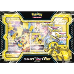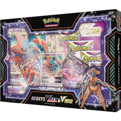 Vælg en mytisk Pokémon for at stå ved din side – hver ankommer som en trio af magtfuld Pokémon V, der kan tage Dit dæk til det næste niveau! Du kan udvikle Deoxys V for at udnytte den høje HP af Deoxys Vmax i forsvarsforme eller den ødelæggende VStar-magt af Deoxys vStar i angrebsforme-eller udvikle Zeraora V for at imødegå din modstanders strategi med de hårdt ramte angreb fra Zeraora VMAX eller Lightning- Slående VStar -magt fra Zeraora VStar. Du finder også et fantastisk overdimensioneret kort, der viser den fremhævede Pokémon VStar, Booster Packs, en strategiduide og en VStar -markør for kamp.