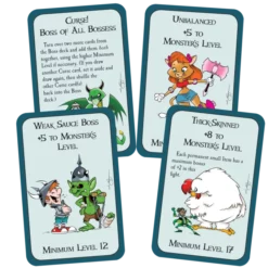 Du er temmelig god til Munchkin – stukket nogle venner, plyndrede nogle værelser, dræbte et par monstre, vandt nogle spil – og nu tror du, at du er klar til at tage boss -monstre. Nå, se ikke længere; Munchkin -chefer har alle de episke monsterforstærkere og Munchkin -buffere til at give enhver spiller en Battle Royale (med ost). Føj dette specielle udvidelsesdæk til ethvert Munchkin -spil, og gør dig klar til at blive bosset!