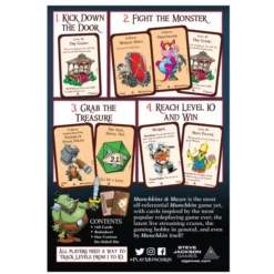 Munchkin Wonderland transporterer spillere til den ikoniske verden af Lewis Carrolls Wonderland -romaner. Flyt rundt om det illustrerede spilbræt. Hvis du lander på et monster som Jabberwock eller Cheshire Cat, skal du slå den med en rulle TE -terning o