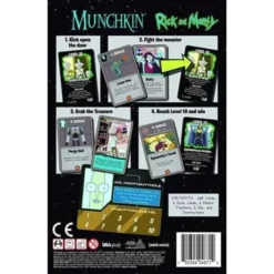 Munchkin: Rick og Morty smelter sammen med det klassiske kortspil sjov af monster-drejning og rollespil med cyborgs, udlændinge og dæmoner fra den populære tv-serie, Rick og Morty. Spil som Rick, Morty, Beth, Jerry, Summer eller Mr. Poopybutthole for at b
