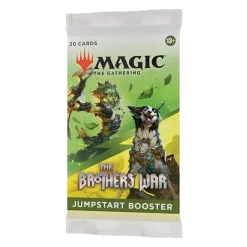 Brødrenes krig & nbsp; Jumpstart Boosters indeholder 20 magi kort ( inklusive alle de lande, du har brug for at spille). I hver pakke finder du 2 sjældne kort, hvoraf 1 kan være et mytisk sjældne og 2 landkort, der er traditionel folie.